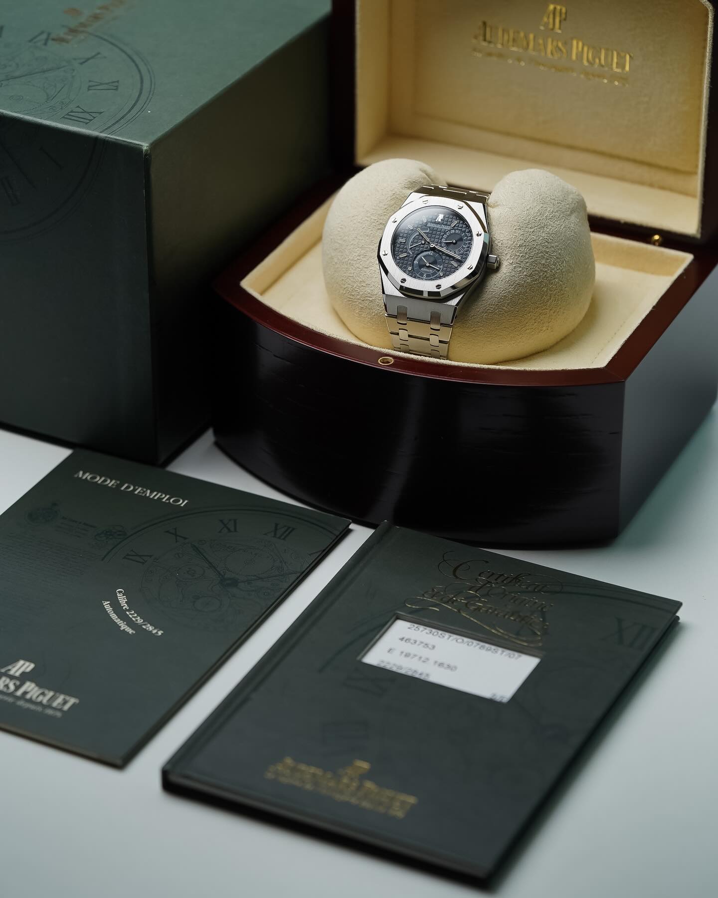 กลไก: Automatic Cal. 2229 / 2845 (ฐาน Jaeger-LeCoultre) เป็น Royal Oak ที่มี Complication ครบ แต่ยังคงขนาดคลาสสิก Ref. 25730ST ผลิตช่วงประมาณปลายยุค 1990s – 2005