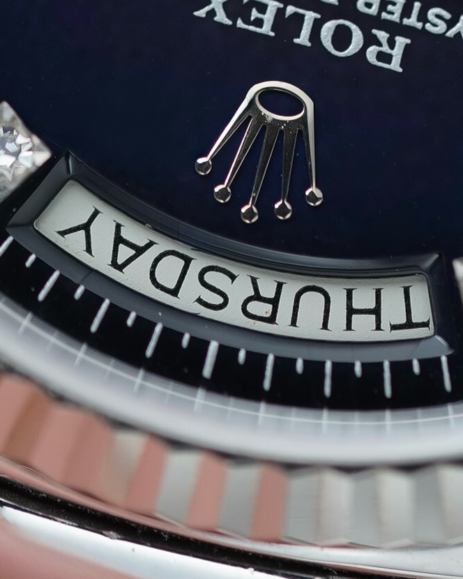 Rolex Day-Date Ref. 18039 ผลิตปี 1987 (Series 5.7M) ตัวเรือน White Gold 18K ขนาดคลาสสิก 36mm พร้อมหน้าปัด Tropical Black Fade เป็น Midnight Blue เล่นแสงแล้วมีมิติ เปลี่ยนเฉดตามองศา แรร์ และมีเสน่ห์แบบที่เรือนใหม่ให้ไม่ได้